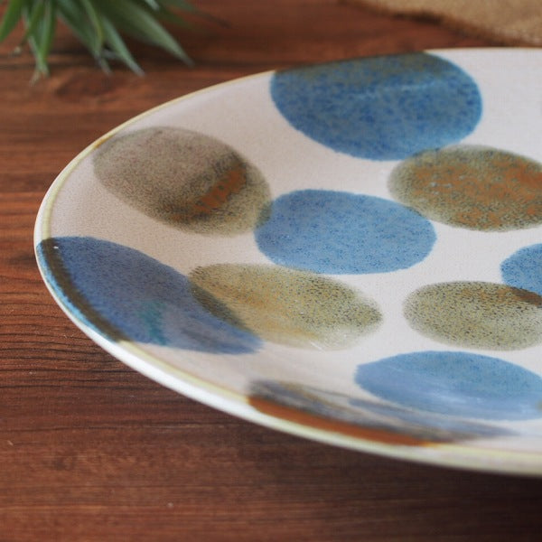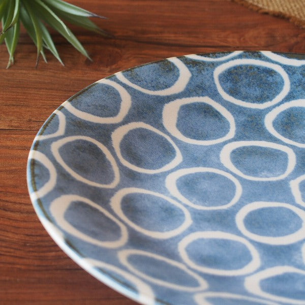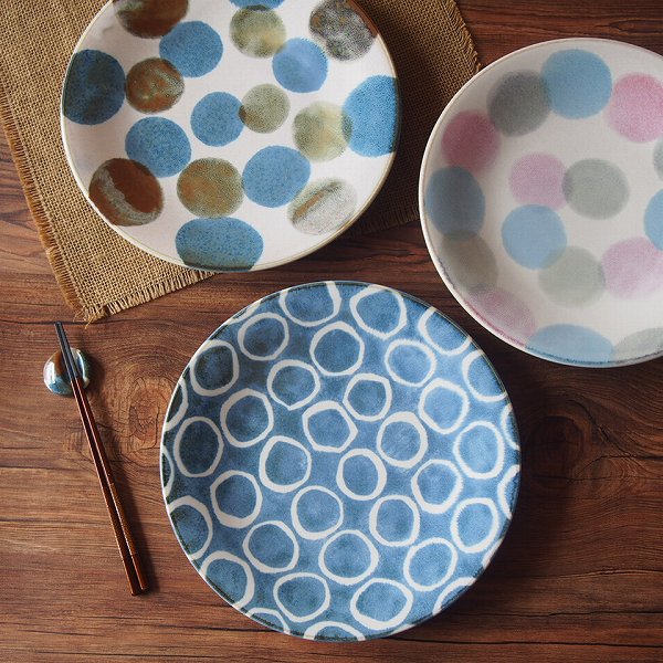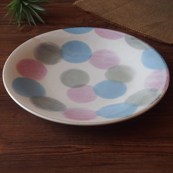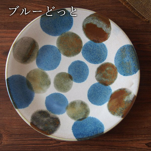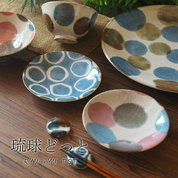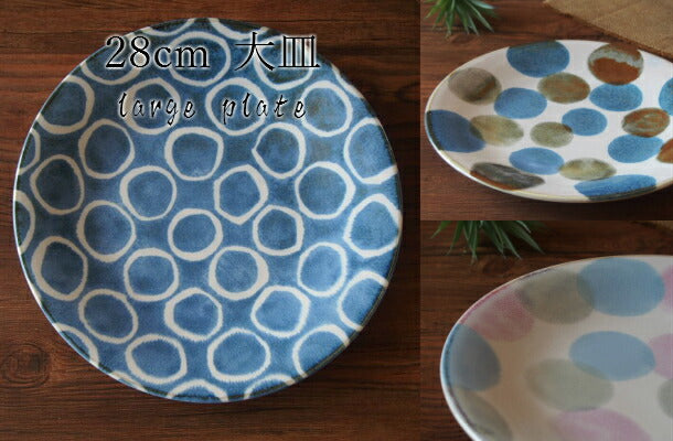 やちむん風 ドット 大皿 28cm 琉球どっと ピンクどっと/ブルーどっと/染付白ヌキ丸紋