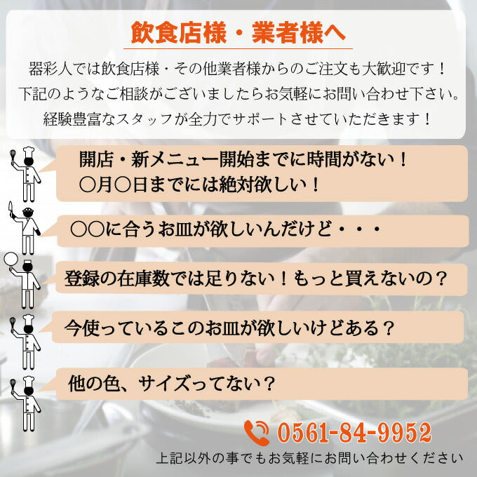 | 注意事項 | ■商品の撮影には最大限注意を払っておりますが、閲覧時のモニター環境によりましては実際の商品と色合いが異なって見える場合がございます ■商品の特性上、色合い、色の濃淡、タレ具合など製品ごとに差がございます。やきものの魅力としてご理解ください ■製造工程上やむを得ない小さな傷・若干の色ムラがある場合がございます。ご了承ください。 ◇上記の理由による返品・交換は承りかねますのでご了承の程よろしくお願いいたします。 ■こちらの商品は実店舗でも販売しております関係上、ご購入のタイミングによっては品切れが発生する場合もございます。 大変恐れ入りますが、その場合はキャンセル対応をさせていただきますこと、予めご了承ください。 |