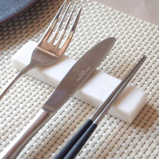 天然大理石を使った、気品のあるカトラリーレスト。雰囲気はまるで高級レストラン。
