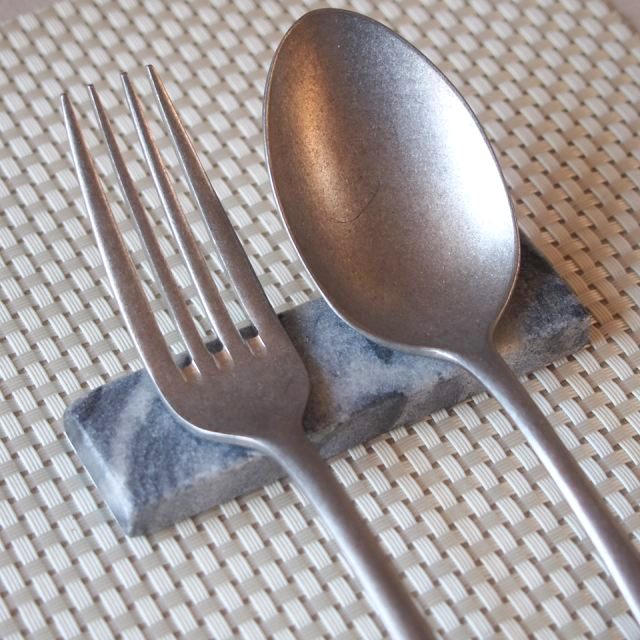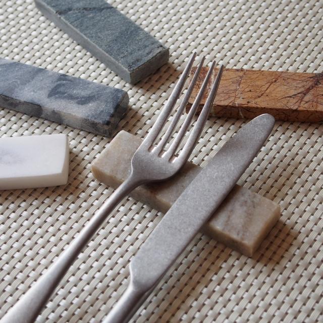 天然大理石を使った、気品のあるカトラリーレスト。雰囲気はまるで高級レストラン。