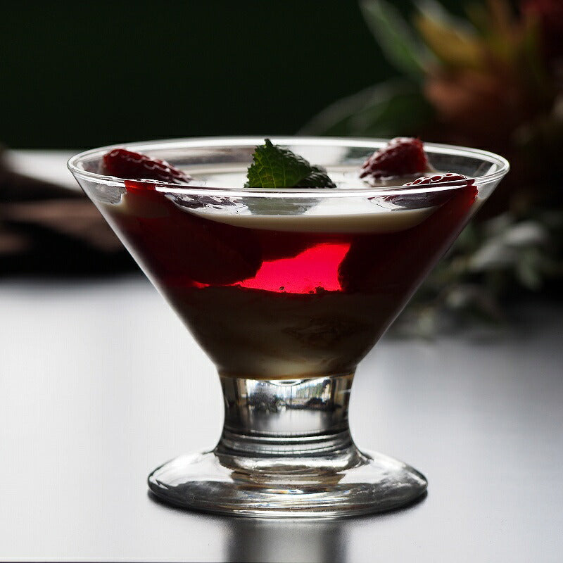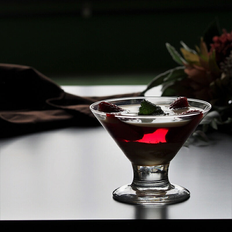 安定した台座は機能性に優れ、置かれた姿も美しい。まるで芸術品のようなデザートグラスです。