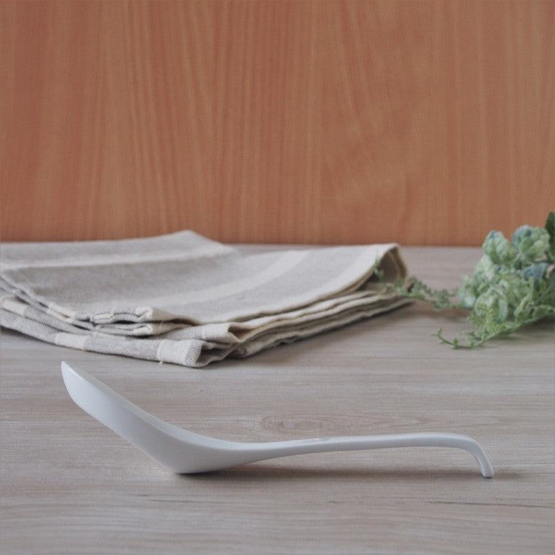 柄の先端が曲がっていて縁に引っかかるようになっている為、スープに「チャポン!」がありません。